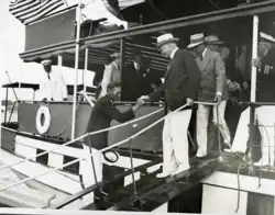 President Franklin D. Roosevelt used the yacht more frequently, with over fifty recorded outings between 1933 and 1935.[17] On March 25, 1933, what was now known simply as Sequoia and no longer Sequoia II, became the official presidential yacht after it was transferred from the Department of Commerce to the Naval Department.[18] An elevator was installed to enable access for the polio-stricken President, who, like Hoover before him, enjoyed fishing aboard Sequoia and also used the vessel for important meetings and summits.[18]