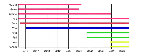 | Past members | Misato Sakurai Mizuha Ayame Kawase |