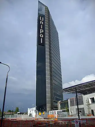 Unipol Tower is a 33-story office skyscraper located at Via Larga in Bologna, Italy. Rising to a height of approximately 127 metres (417 ft), the building serves as the new headquarters of Unipol Bank and includes office and retail space in its 13,000 m2 (140,000 sq ft) square metres of floor area. Construction was completed in 2012.