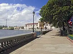 The United States Custom House (Spanish: Edificio de la Aduana de Estados Unidos), also known as the San Juan Custom House (Edificio de la Aduana de San Juan), is a historic custom house located at the marina of Old San Juan in the city of San Juan, Puerto Rico.[1] The custom house is located at the site of the former main port of the city of San Juan, north of the former Spanish Arsenal of San Juan, and next to the Las Dársenas and Immigrants' Square (Plaza del Inmigrante) and the Jose V. Toledo Federal Building and United States Courthouse. The large two-storey custom house is considered by the NRHP to be a superb example of Spanish Colonial Revival architecture in Puerto Rico and the Caribbean. It is most notable for its size, its elaborate terracotta-ornamented central tower and its pink-colored exterior.[2]