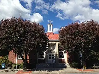 A large mural on one wall was typical of work commissioned by the Section of Fine Arts, which Simon was in charge of as supervising architect under the control of the United States Department of the Treasury. As a New Deal office from its origination in 1933 it employed out of work artists to produce art for public buildings. It was referred to simply as “the Section.” Many of the New Deal organizations roles was to create jobs for the many unemployed of the depression, in this case, artists. It was given the task of placing works of art in public places, such as post offices and libraries, for the appreciation of art. Simon was removed from the position in 1939 and the production of public art was removed from the treasury department in 1943.[2] The building was added to the National Register of Historic Places in 1989,[1][3] along with two other Simon-built post offices.[4]
