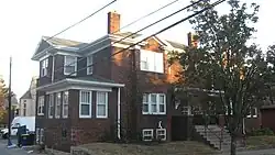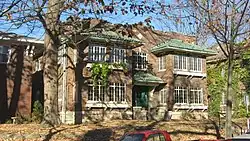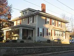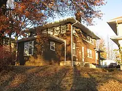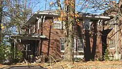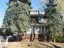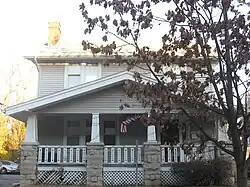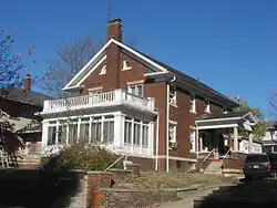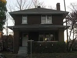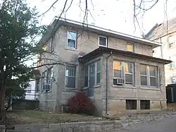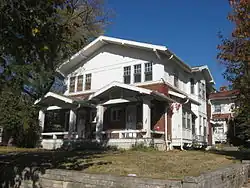Before the district was first nominated for the National Register, four houses on the east half of the block bounded by Indiana Avenue, Fess Avenue, Eighth Street and Ninth Street were demolished. Joseph Smith of the Showers Brothers furniture factory engaged John Nichols to build a two-story brick Colonial Revival house at 403 North Fess in 1914. J. Neill was the general contractor.[7] Clarence Neill, general contractor, built a house for Charles F. Johnson at 421 North Fess in 1916. Edwin C. Doeppers and Company were the architects.[8] Indiana University's Mathers Museum of World Cultures and the Glenn A. Black Laboratory of Archaeology now occupy those two lots, among others.[9]