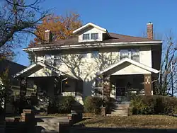 | Notable | | 825 East Eighth Street 39°10′10.8″N 86°31′25.2″W / 39.169667°N 86.523667°W | 1921[26] | Prairie Style | Alfred Grindle drew plans for Indiana University football coach Ewald O. Stiehm, who let contracts and supervised construction himself.[26][27] |