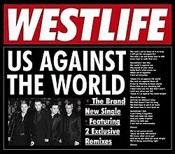 "Us Against the World" is a song by Irish boy band Westlife from their eighth studio album Back Home (2007). The song was released as the album's second single on 3 March 2008.