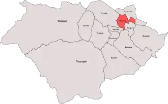 The nearest settlements are: in the north, the village of Guchum-Kale (Гучум-Кале); in the southeast, the village of Bugaroy (Бугарой); in the southwest, the village of Konzhukhoi (Конжухой); and in the northwest, the village of Gukhoi (Гухой).[5]
