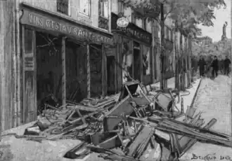 An anarchist, François Koënigstein, known as Ravachol, reacted to this by deciding to assassinate the judge in question in the Saint-Germain bombing and, after his failure, targeted the prosecutor in a new bombing attack.[5] On 30 March 1892, Ravachol, then in hiding and dining at the restaurant Le Véry on 22 Boulevard Magenta,[6] was recognized by an employee, Jules Lhérot, who quickly passed the information on to the restaurant's owner, Jean‑Marie Véry.[7] Véry decided to alert the police and denounced Ravachol to the authorities, leading to his arrest. The police became aware of the dangerous situation of their informants and increased security measures around the restaurant.[8]