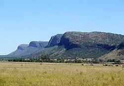 It lies at the southern edge of the rugged Waterberg Massif, which is a biosphere that contains considerable biodiversity, including numerous large mammals (e.g. Giraffe, White Rhino, Blue Wildebeest). Waterberg is the first region in the northern part of South Africa to be named as a Biosphere Reserve by UNESCO. The extensive rock formation was shaped by hundreds of millions of years of riverine erosion to yield diverse bluff and butte landform.[2]