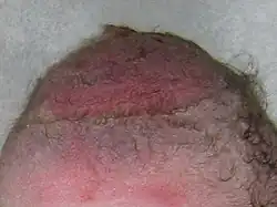 A baby's scalp showing the effects of a vacuum extraction (chignon). The effects were gone a week later. | |