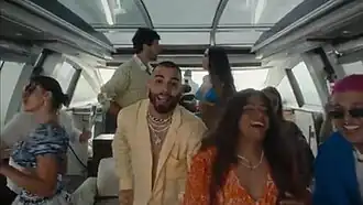 The music video was released with the single simultaneously on May 11, 2023.[9] In it, you can first see a shirtless Sebastián Yatra in an affected area where the police arrived to find out what happened. Next to it is Manuel Turizo. Then, it comes out that a few hours before, a woman gets out of the car to take pictures with people and that people see that it is cloudy with a high probability that it is going to rain and then people get on a boat and we can see everyone dancing and Bee him singing too. Then, inside the boat, Manuel Turizo is seen singing along with Sebastián Yatra. Then Sebastián Yatra is seen jumping with a woman from the boat and a shark chases them and they quickly get on the boat again. The video ends with someone following the boat and then, as seen at the beginning of the video, we see Yatra and Turizo next to the police at the place where something terrible happened.