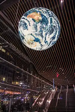 The building's heating and cooling system feeds through the deep water of the harbor, using it as a constant temperature base to reduce the amount of energy used for heating and cooling.