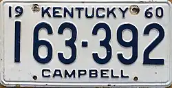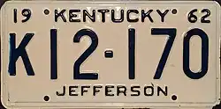 - ^ a b Tanner, Eric N. "Kentucky License Plates". allaboutlicenseplates.com. Retrieved December 3, 2015.