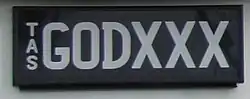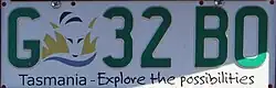 The Australian state of Tasmania requires its residents to register their motor vehicles and display vehicle registration plates.[1] Current regular issue plates are to the standard Australian dimensions of 372 mm (14.6 in) in length by 134 mm (5.3 in) in height, and use standard Australian serial dies.[2]
