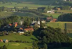The pilgrimage church in the settlement is dedicated to Saint Francis Xavier and belongs to the Parish of Šentrupert. It was built from 1723 to 1735 and has two belfries.[4]