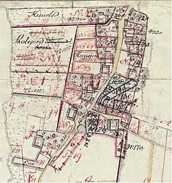 The name Viby is first documented in 1257 as Wicby (Vigby 1315). In the Middle Ages, Viby consisted of 12 farms. Most of these were owned by various prebends associated with the cathedral chapter in Roskilde while one was owned by Our Lady's Abbey. The farms' land was located to the south. Viby was located in the southernmost part of the parish of Syv. Syv in the northern part of the parish consisted of two villages: Syv Kirkeby in the west, with the church, rectory and two farms, and Øster Syv in the east with eight farms in 1682.[3] The area between Syv and Viby was owned by Vibygård, a manor house located on the eastern outskirts of Viby. A short distance to the west of Viby was the village of Dåstrup.[4]