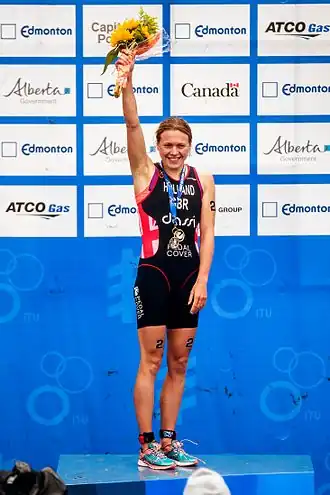 Holland also competed in Super League Triathlon.[2] She was born in Gloucester.[3] As of 2023, Holland is transitioning part-time to broadcasting, forming part of the BBC Sport broadcasting team for the World Triathlon Championship Series.