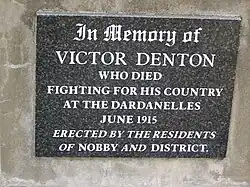 Victor Denton War Memorial is a heritage-listed memorial at Nobby Cemetery, Nobby, Toowoomba Region, Queensland, Australia. It was made in 1915 by Bruce Brothers. It was added to the Queensland Heritage Register on 21 October 1992.[1]