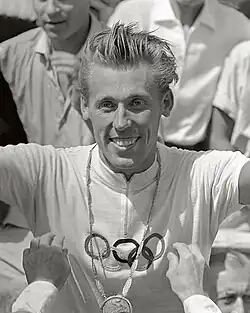 Viktor Arsenevich Kapitonov (Russian: Виктор Арсеньевич Капитонов, 25 October 1933 – 2 March 2005) was a Russian road cyclist who competed at the 1956 and 1960 Summer Olympics. In 1956, he finished 32nd individually and 6th with the Soviet team. In 1960, he won the individual road race and finished third in the 100 km team time trial. His gold medal was the first for Soviet cyclists. At the end of the race Kapitonov mistakenly sprinted for the finish with one lap to go, surprising his main rival Livio Trapè. In the last lap Trapè sprinted first, but Kapitonov caught him up in the last few meters.[1][2]