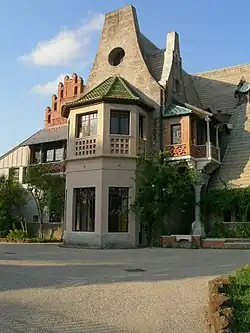 The Casina delle Civette (House of the Little Owls) results from a series of additions to the nineteenth-century "Swiss Cabin", which was originally intended as a refuge from the formality of the main residence. It was designed in 1840 by Jappelli. The outside of the house was faced with blocks of tufa, while the inside was painted in tempera. The complex now consists of two buildings, the main house and the annexe, connected by a small wooden gallery and an underground passage. These buildings bear little resemblance to the original. In 1908, architect Enrico Gennari began to convert the small building into a residence with huge windows, loggias, porticos and turrets, decorated with majolica and stained glass.