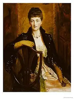 The concerto is dedicated to Kreisler, but the score also carries the Spanish inscription, "Aquí está encerrada el alma de ....." ("Herein is enshrined the soul of ....."), a quotation from the novel Gil Blas by Alain-René Lesage. The five dots are one of Elgar's enigmas, and several names have been proposed to match the inscription. It has been widely believed to allude to Alice Stuart-Wortley, daughter of the painter John Everett Millais.[13] She was Elgar's dear friend whom he nicknamed "Windflower", and his love for her and her inspiration to him are well known.[14] There is no definite proof linking her to the inscription of the concerto, although Elgar dubbed several of the themes "Windflower", and in his letters to her he referred to it as "our concerto".[15]