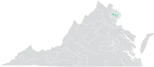 District 37 is a serpentine district located entirely within Fairfax County in the suburbs of Washington, D.C., including some or all of Annandale, Kings Park, West Springfield, Burke, Fair Oaks, and Centreville, among other communities.[3] The district overlaps with Virginia's 8th, 10th, and 11th congressional districts, and with the 35th, 37th, 38th, 39th, 40th, 41st, 42nd, 53rd, and 67th districts of the Virginia House of Delegates.[4]