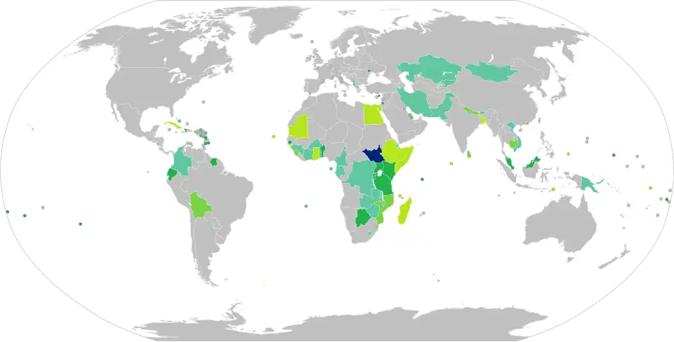 As of 2024, South Sudanese citizens had visa-free or visa on arrival access to 46 countries and territories, ranking the South Sudanese passport 95th in the world according to the Henley Passport Index.[1]