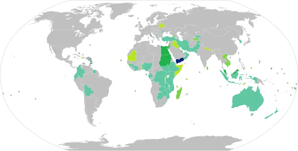 Visa requirements for Yemeni citizens are administrative entry restrictions by the authorities of other states placed on citizens of Yemen. As of April 2025, Yemeni citizens had visa-free or visa on arrival access to 32 countries and territories, ranking the Yemeni passport 100th in terms of travel freedom according to the Henley Passport Index.[1]