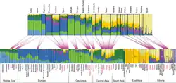 - ^ Jeong, Choongwon; Balanovsky, Oleg; Lukianova, Elena; Kahbatkyzy, Nurzhibek; Flegontov, Pavel; Zaporozhchenko, Valery; Immel, Alexander; Wang, Chuan-Chao; Ixan, Olzhas; Khussainova, Elmira; Bekmanov, Bakhytzhan; Zaibert, Victor; Lavryashina, Maria; Pocheshkhova, Elvira; Yusupov, Yuldash (2019). "The genetic history of admixture across inner Eurasia". Nature Ecology & Evolution. 3 (6): 966–976. Bibcode:2019NatEE...3..966J. doi:10.1038/s41559-019-0878-2. ISSN 2397-334X. PMC 6542712. PMID 31036896.