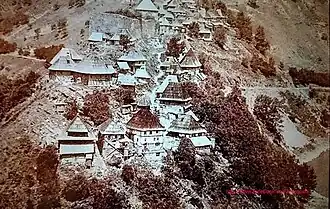 Archaeological excavations to date on the site of the fort showed no signs of fortifications dating from the prehistoric period or antiquity, or prior to the medieval times. The village itself is one of the oldest and well preserved settlements of Bosnia and Herzegovina, dating back to the 14th century and times of medieval bans and later kings of Bosnia. Vranduk village was established around a medieval citadel of the same name, and together constitute a protected architectural assembly, and as such it is a national monument of Bosnia and Herzegovina, well preserved and maintained in good condition by local and state commissions for national monuments, and managed by a local tourist organization. A small mosque was erected below the citadel after the Ottoman conquest of the Bosnian Kingdom which still is standing today in good condition. The mosque was dedicated to and named after Sultan Mehmed II, conqueror of Bosnia, and is also referred to as the Imperial Mosque or Emperor's Mosque.[3] In 1963, excavations were undertaken by Branka Raunig to explore the impact of the Roman empire on the village.[4]