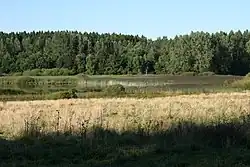 The Wölferlinger Weiher is a pond in the municipality of Wölferlingen between the village of Wölferlingen itself and Langenhahn in the German county of Westerwaldkreis. In 1979, the Wölferlinger Weiher was designated an official nature reserve. It is on the Seven Weiher Way (7-Weiher-Weg) in the Westerwald region. Laid out along with six other ponds by Count Frederick III of Wied in the 17th century, the Wölferlinger Weiher is part of the protected landscape known as the Westerwald Lake District.