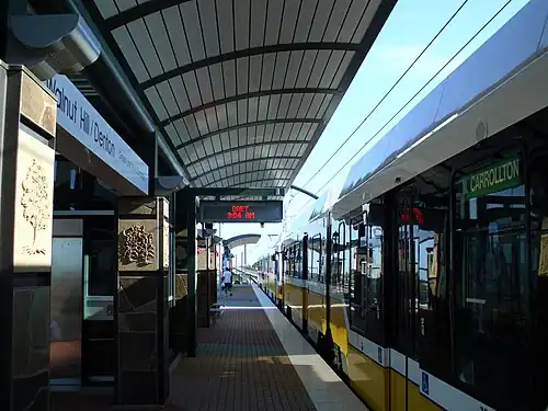 Walnut Hill/Denton station is a DART station in Dallas, Texas. It is located in Northwest Dallas and serves DART's Green Line.[2] The station opened as part of the Green Line's expansion in December 2010.
