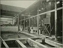 In 1908, Wang and Liang Dingfu traveled to France to acquire a patent for the Herrenschmidt process, a new technique for smelting antimony trisulfide ore. Once back in Changsha, Wang joined the newly founded Wah Chang Mning & Smelting Company (Chinese: 华昌炼矿公司) owned by the Liang family.[10] They subsequently established China's first antimony smelting facility, the Changsha Wah Chang Antimony Refinery, where Wang served as the metallurgical expert and chief engineer.[11]