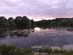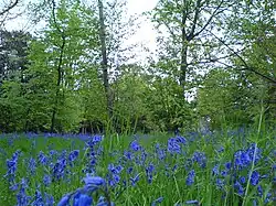 Trees include a 346-year-old European oak, which in 2020 was dying and losing branches, a further 330 to 340-year-old European oak, a 280 to 300-year-old wych elm, a Eurasian aspen, and a 465 to 480-year-old European yew. Many European beech trees are over 200 years old. Areas contain common rhododendron, which is considered invasive in Britain.[2] There are areas of grassland, and broadleaved woodland with glades. Bluebells grow in the woods, and common gorse along one lake. Fauna includes Eastern gray squirrels, red foxes, Canada geese, and mute swans. Parakeets are evident in the Summer.