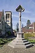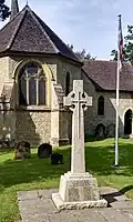 | Ashtead War Memorial St George's Church, Barnett Wood Lane, Ashtead | 12 June 1920 | Tall tapered Celtic cross on a square tapered plinth. The sides of the plinth have the names of the First World War casualties inscribed. At the base is a separate semi-raised marble tablet listing the World War II casualties.[6][7] | None | |