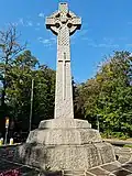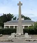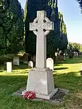| Epsom War Memorial Ashley Road and Treadwell Road, Epsom | 11 November 1923 | Designed by Aston Webb, the memorial consists of a tall, rough-hewn, white granite Celtic cross. The names are inscribed in panels on a wall behind the cross.[61] The cross was erected in 1921 but the name panels were not added until 1923. The gates at the entrance to the cemetery were erected to commemorate the members of the University and Public Schools Brigade which was hosted in Epsom.[62] | Grade II 1406252 |