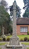 | Bridley Manor War Memorial Fox Corner, Worplesdon | 1922 | Designed by the London Necropolis Company and erected in 1922. The memorial takes the form of a Celtic cross carved in Cornish granite. It was struck by a vehicle and toppled in 1954, but was re-erected. It was subject to further repairs in 1977 and a restoration in 1994.[24] | Grade II 1469800 |
