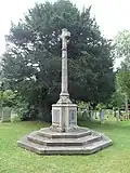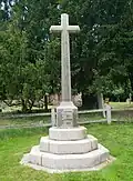 | Oxshott War Memorial Oxshott Heath, Oxshott | 3 October 1920 | Designed by W. D. Caröe, the memorial was carved in Clipsham limestone. Originally 25 ft (7.6 m) tall,[106] the height was reduced after the memorial suffered damage in a storm. It is composed of a wheelhead cross on an octagonal column, resting on a square plinth. The base consists of five octagonal steps. The names of those who died in the Second World War are inscribed on the plinth, while those who died in the First World War are recorded on the steps.[107][108][109] | Grade II 1430670 |