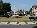 | Shepperton War Memorial Russell Road roundabout, Shepperton | 27 March 1921 | The 20 ft high (6.1 m) memorial is carved in Portland stone and takes the form of a cross mounted on an octagonal base.[134] In 1987, the memorial was relocated around 10 m (33 ft) to the south to facilitate the construction of a bypass road.[135] | None |