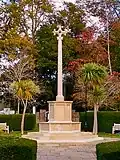 | Esher Memorial Cross Esher Green, Lammas Lane, Esher | 1920? | Designed by Thomas Graham Jackson and carved in Portland stone, the memorial consists of a Latin cross on top of a tapering shaft mounted on an octagonal plinth. The Great War casualties are listed on bronze panels on alternate faces of the plinth, with World War II names on the intervening stone panels.[63][64] | Grade II 1424130 |