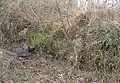 Hármasi or Keszler mill, the current riverbed of Zala at the former mill, remains of the sluice system in the background, Batyk -