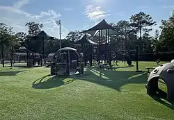 Watkinsville adopted a tagline in 2021 of "Come. Connect. Create." highlighting its desire to become a destination, its goal of better connecting its citizens and its embrace of creators of the arts and entrepreneurs. Its unofficial motto "The Artland of Georgia" is on the wall at City Hall, and was designed by the late artist Jim Shearon.[14] The Oconee Cultural Arts Foundation or OCAF is located in Watkinsville in the old high school as part of the 1902 OCAF Center and Gallery near the Board of Education. OCAF also has recently restored "Rocket Hall," a WPA project in the 1930s. Rocket Hall, long used for school and youth basketball, is now used for exhibitions and community gatherings. Just outside Rocket Hall is the recently restored Rocket Field, an historic ball field and play area for community youth that also includes a new play structure and stage for concerts and performances. The city recently finished a $1 million renovation of the park with support from Value Added Concepts. The Iron Horse sculpture stands in a field approximately twelve miles south of Watkinsville (barely in Greene County).[15]