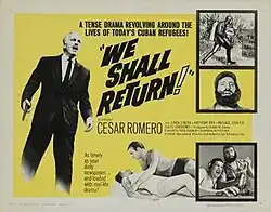 We Shall Return is a 1963 American drama film directed by Philip S. Goodman and starring Cesar Romero and Anthony Ray. It follows the flight of a Cuban family to Florida following the Cuban Revolution of 1959 and their plans to overthrow Fidel Castro. Shot predominantly on location in Florida, the film would have its world premiere there as well, on February 15, 1963.[1][2]