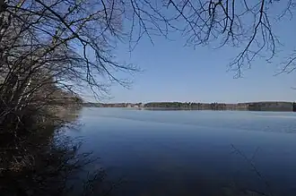 Rising gently above Lake Cochichewick, Weir Hill offers hiking trails that pass over the crest of the 305-foot (93 m) double drumlin and track the shore of the lake.[4] A rail trail runs along part of the hill, overlooking Lake Cochichewick. Many North Andover residents also use the trail system for cross-country, mountain biking, and its shores to go swimming.