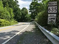 West Virginia Route 635 is a north–south state highway located in McDowell County, West Virginia. The southern terminus is at the Virginia state line south of Jolo, where the road continues south as State Route 635, a secondary state highway. The northern terminus of the route is at West Virginia Route 83 in Jolo.
