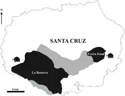 The western Santa Cruz tortoise (Chelonoidis niger porteri)[1] is a subspecies of Galápagos tortoise endemic to Santa Cruz Island in the Galápagos. They are found only on the southwestern slopes of the island, with an estimated range of 141 sq. kilometers. There are approximately 3400 individuals in the wild, and have seen rising numbers in population, despite being critically endangered. MtDNA evidence shows that there are actually three genetically distinct populations on Santa Cruz Island. They are characterised by a black, oval carapace (to 130 cm) that is domed, higher in the centre than in the front, and broad anteriorly. Their life expectancy is 175 years.[3]