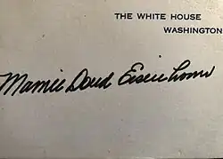 First Ladies also used the cards to fulfill autograph requests. Occasionally, other family members, such as Margaret Truman Daniel, as well as staff members, signed them as well. There is one known example signed by Edward, Prince of Wales, during a visit to the White House during the Coolidge Administration.