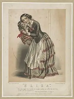 The character of Eliza in the 1852 novel Uncle Tom's Cabin was described as a quadroon slave (one-quarter black ancestry), whose child also appeared to be "all-but-white".[9][10]