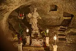 St. Paul's Grotto is a grotto in which Paul the Apostle is believed to have stayed in while he was shipwrecked in Malta, and it is located beneath the Collegiate church of St. Paul. The grotto had become a popular pilgrimage site by the early 17th century, and in 1610 it was entrusted to the Spanish hermit Juan Benegas de Cordoba. In 1617, control of the grotto was passed to the Order of St. John, and Grand Master Alof de Wignacourt raised the status of the grotto and the church above it to a collegiate church in 1619. He also established the Wignacourt College in order to manage the church and the grotto.[1]