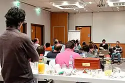 Wikimania is an annual global conference for Wikimedians and Wikipedians, started in 2005. The first Wikimania was held in Frankfurt, Germany, in 2005. Wikimania is organized by a committee supported usually by the local national chapter, with support from local institutions (such as a library or university) and usually from the Wikimedia Foundation. Wikimania has been held in cities such as Buenos Aires,[39] Cambridge,[40] Haifa,[41] Hong Kong,[42] Taipei, London,[43] Mexico City,[44] Esino Lario, Italy,[45] Montreal, Cape Town, Stockholm, and Nairobi[46]. The 2020 conference scheduled to take place in Bangkok was canceled due to the COVID-19 pandemic, along with those of 2021 and 2022, which were held online as a series of virtual, interactive presentations. The in-person conference returned in 2023 when it was held in Singapore, at which UNESCO joined as a partner organization.[47] In 2024, Wikimania was held in Katowice, Poland.