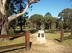 The Park is surrounded by a modern two-rail wooden fence, erected in accordance with the recommendation of the Conservation Management Plan of 2003. A single pathway cuts diagonally across the Park from Macquarie Road opposite St John's Anglican Church down to the junction of George and Duke Roads, where there are metal gates erected in 1947 in memory of those local men and women who had served in World War II. Towards the northern end of this pathway there is the World War I Memorial, originally erected elsewhere in the town in 1918 and reconstructed within the Park in 1966.[1]