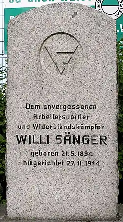 Willi Sänger resistance to National Socialism is memorialized in the Socialist Central Cemetery Friedrichsfelde in Berlin's Lichtenberg district.